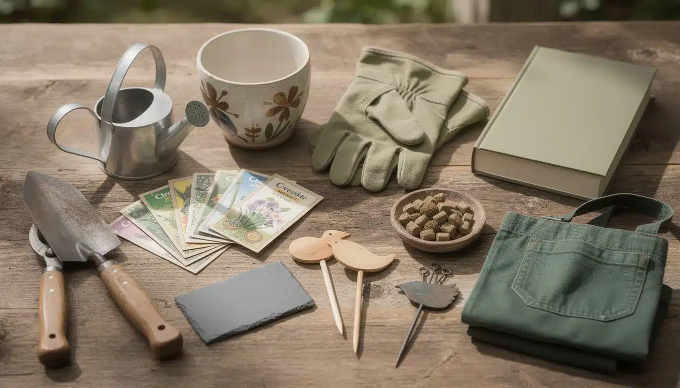 Un kit d’accessoires regroupant ces éléments forme alors un coffret cadeau personnalisé, pratique et toujours utile. Plusieurs enseignes proposent des assortiments thématiques auxquels on peut ajouter quelques sachets de graines pour une touche supplémentaire.